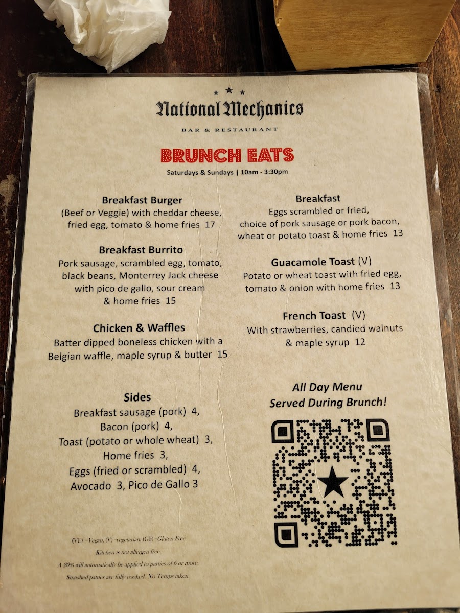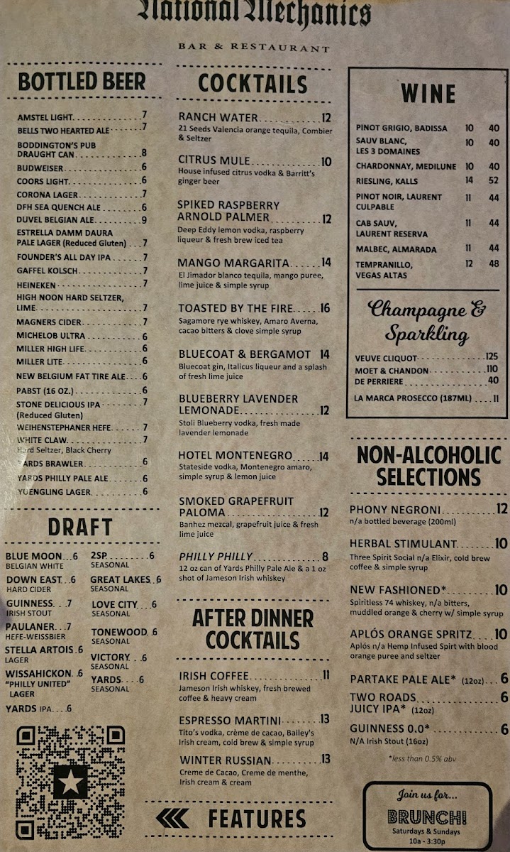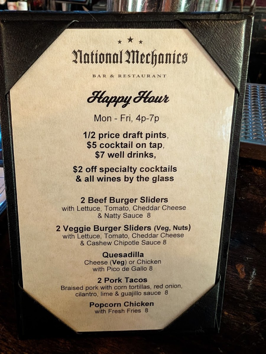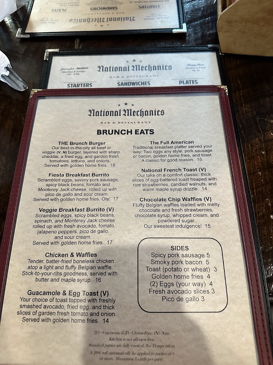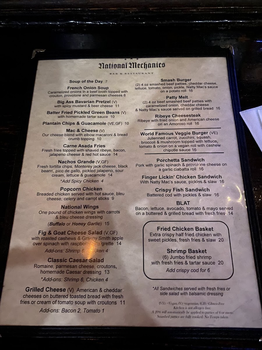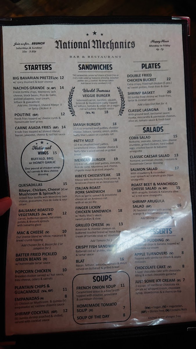 National Mechanics Bar and Restaurant Menu (2025 Update)